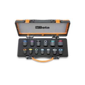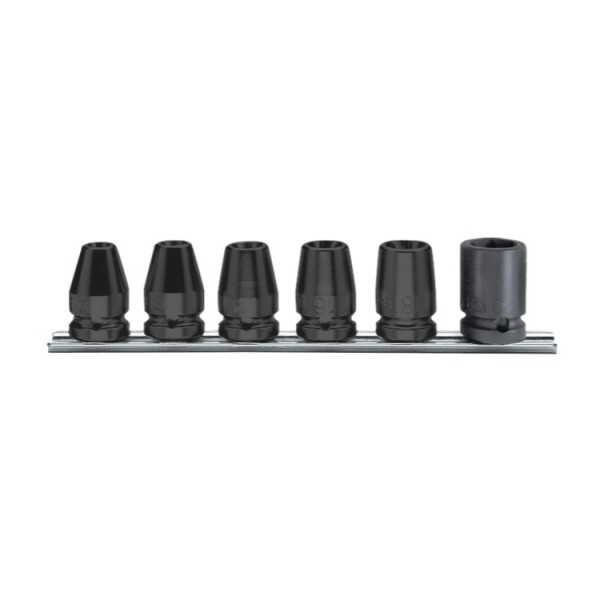 6 delig set van slagdoppen, korte uitvoering, 1/2" aandrijfvierkant, met ophangrek : 13 - 15 - 17 -19 - 22 - 24 mm